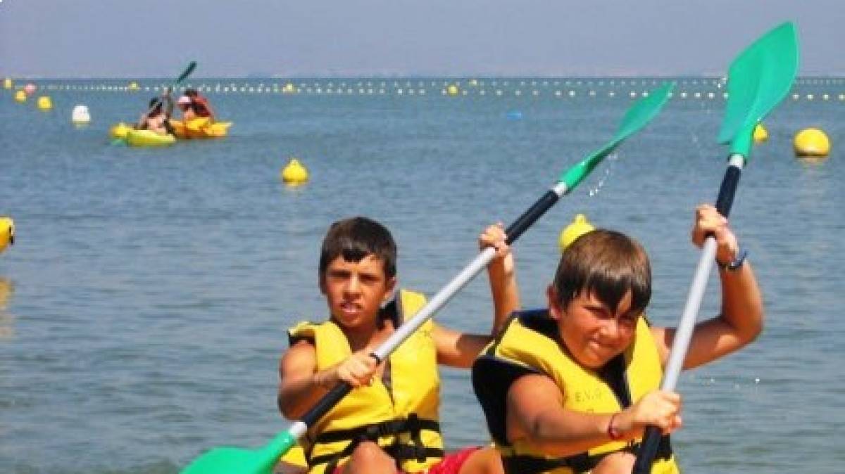 Actividades náuticas, con vela, windsurf, piragüismo y snorkel. Completísimo programa complementario con deportes, talleres, juegos de sobremesa, juegos de animación, veladas, y excursiones de día completo: al parque acuático de AquaVera en quincenas y también una excursión náutica a la isla del Fraile.