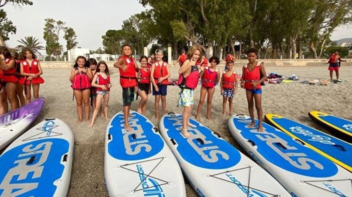 Vela, Canoas, Piraguas, SurfPaddel, Windsurfing, Batallas Navales... y un amplio programa de actividades de multiaventuras: Escalada, Arco, Hinchables acuáticos, Balón sumo, Orugas humanas, etc, hacen de este SUMMER CAMP, desarrollado a pie de playa en Aguadulce (Almería), un inolvidable campamento deportivo para nuestros participantes.