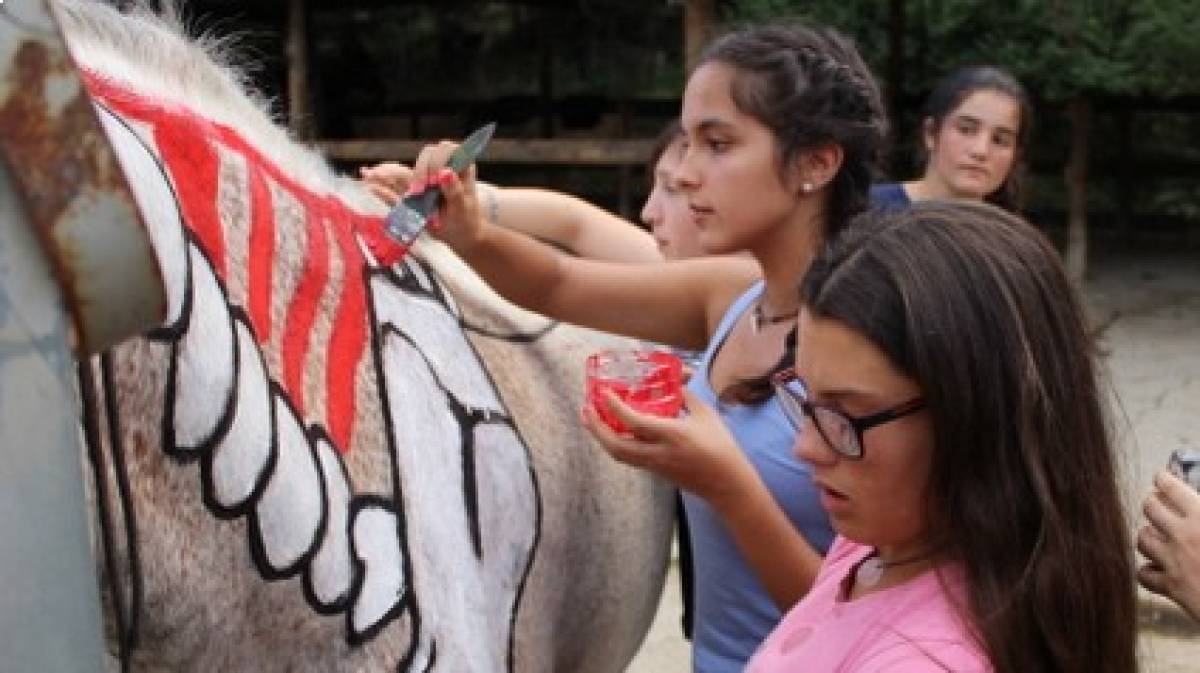 Campamentos internacionales hípicos con inglés, francés y español para extranjeros. Amazonas y jinetes de los cinco continentes comparten su pasión por los caballos y la naturaleza en el marco incomparable del Pirineo aragonés. Para jóvenes de 8 a 18 años, desde iniciación al perfeccionamiento de las diferentes disciplinas que ofertamos: Salto, doma, cross, enganche, horsebording, horsemanship, manejo natural. La formación ecuestre, que basamos en la etología se complementa con talleres de herraje, veterinaria e hipología. Dos horas diarias de inglés, o francés, con profesores nativos expertos en la enseñanza a extranjeros.